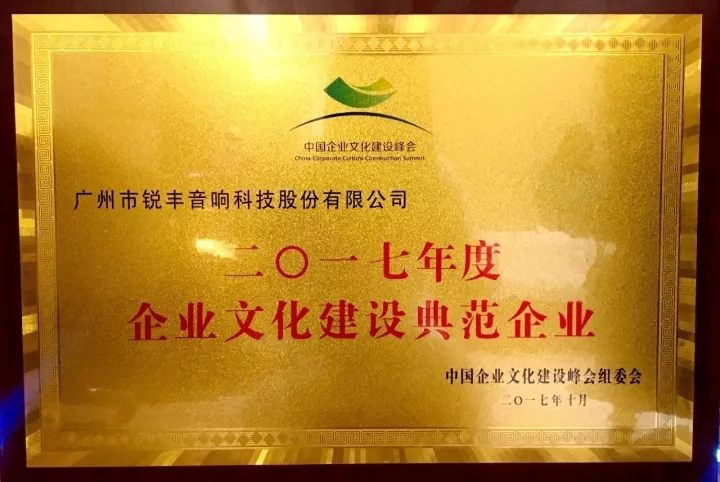 锐丰科技喜获“中国2017年度企业文化建设典范企业”