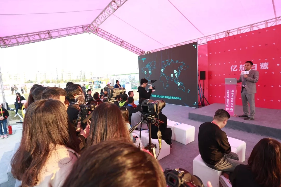 2017年12月31日下午,广州市锐丰文化传播有限公司(以下简称锐丰文化)与广东亿航白鹭传媒科技有限公司(以下简称亿航白鹭)战略合作签约仪式暨新闻发布会在肇庆市鼎湖人民公园媒体中心(2018广东跨年嘉年华现场)举行。
