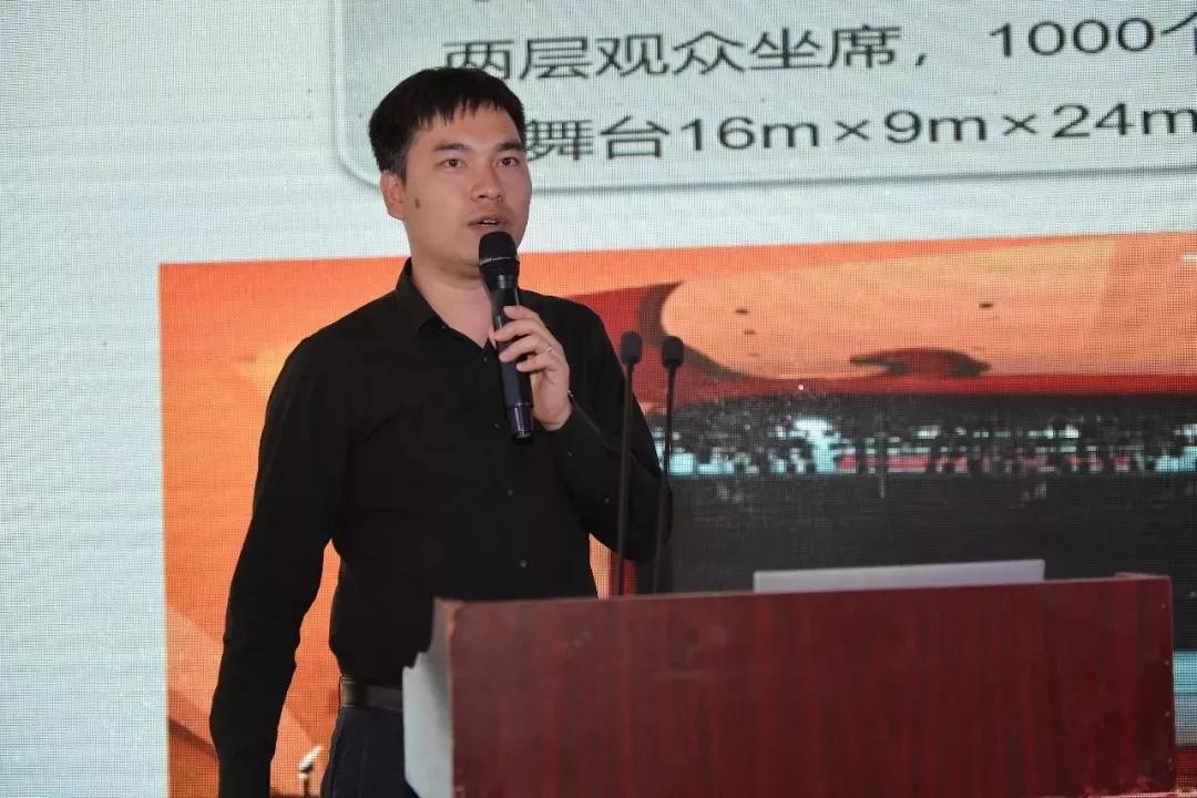 锐丰科技品牌发展运营总监吴华立代表领奖并代表发言,介绍了江苏大剧院戏剧厅音响的整体概况,讲解了音响系统的组成以及线阵列不同垂直覆盖角度的特殊组合。
