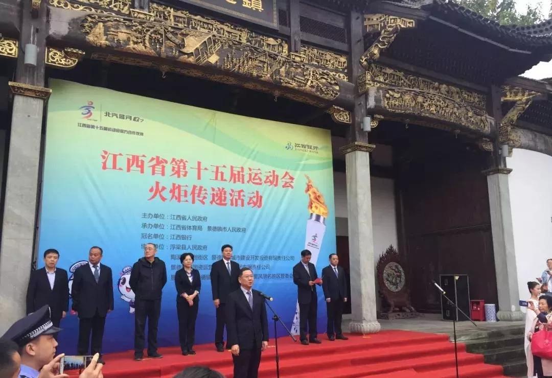 今日活动在景德镇珠山中路御窑厂风火仙师庙举行火炬点火起跑仪式,并开始了全城传递活动。 ▼江西省省体育局局长晏驹腾宣布江西省第十五届运动会火炬传递正式开始