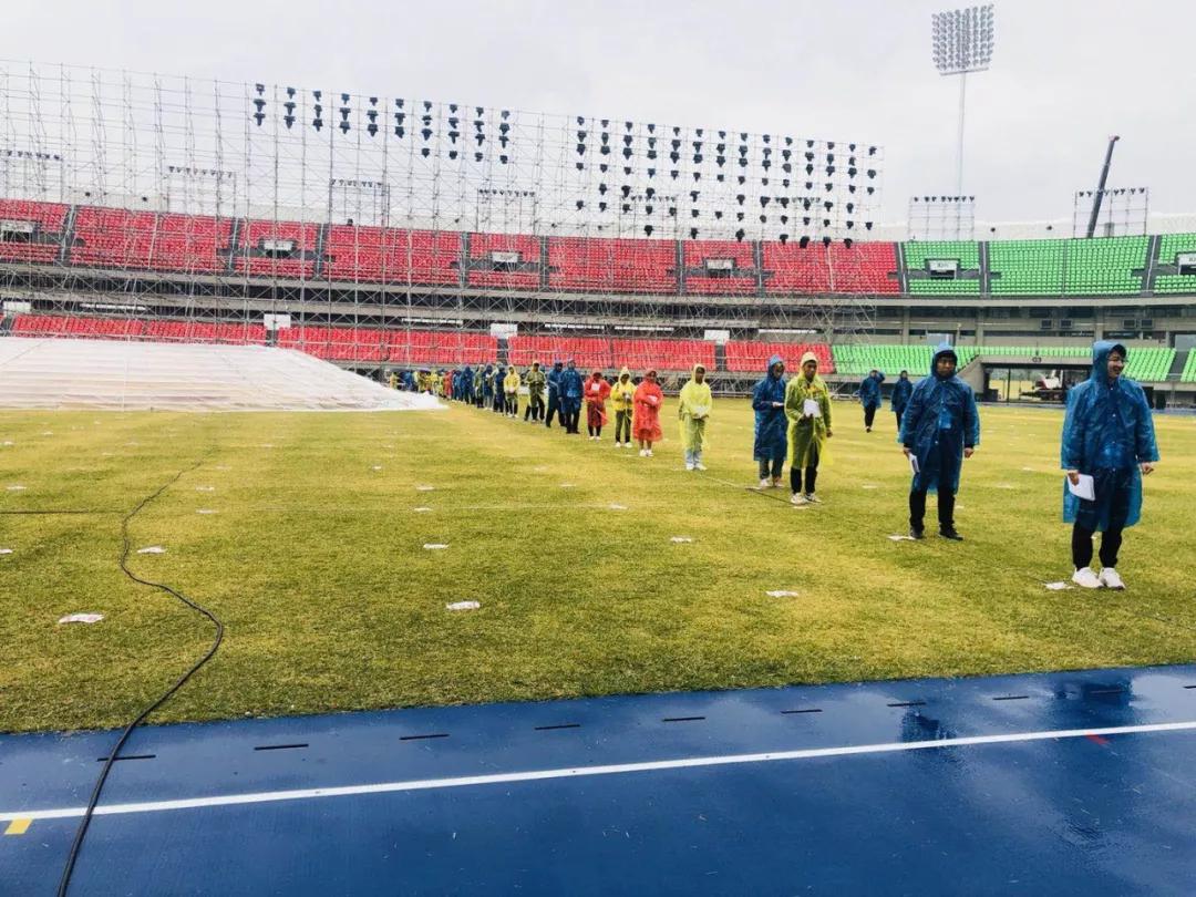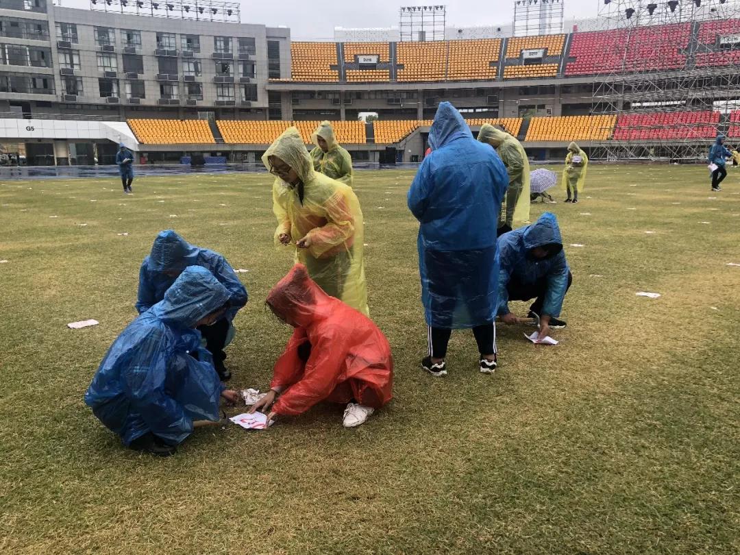 ▼志愿者冒雨现场排练