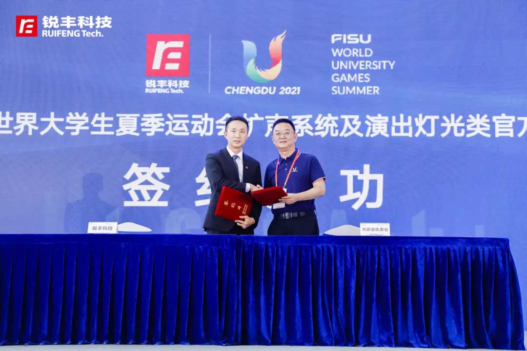 锐丰建声签约成都大运会扩声系统和演出灯光类官方独家供应商 |