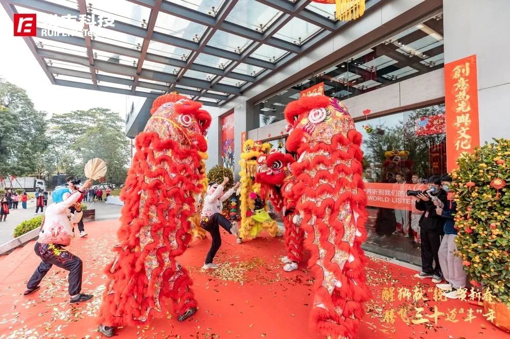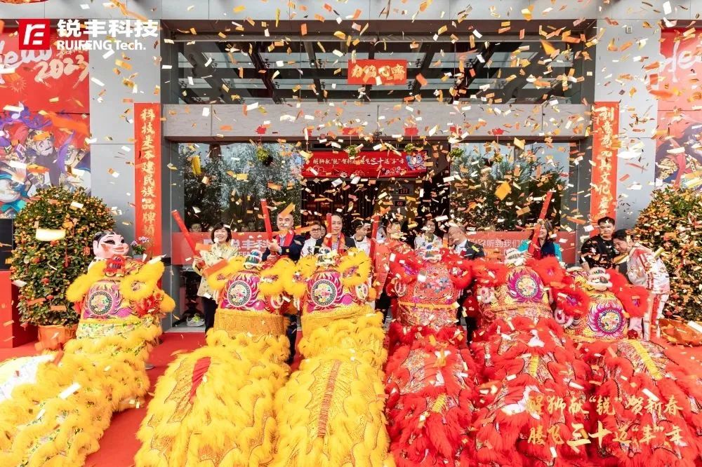乐虎去雄风镇五岳,兔生“锐”气秀三春。2月1日(正月十一),伴随着好彩头的“开门炮”和添好运的“锣鼓声”,锐丰科技新春醒狮仪式拉开序幕,同时也迎来了锐丰科技三十韶华。